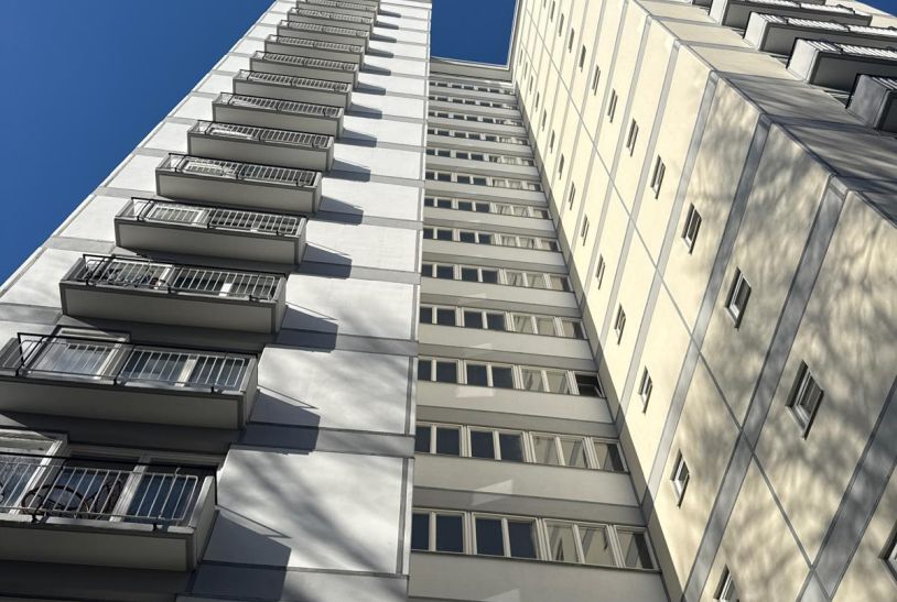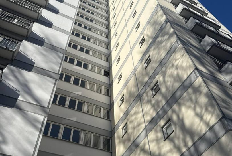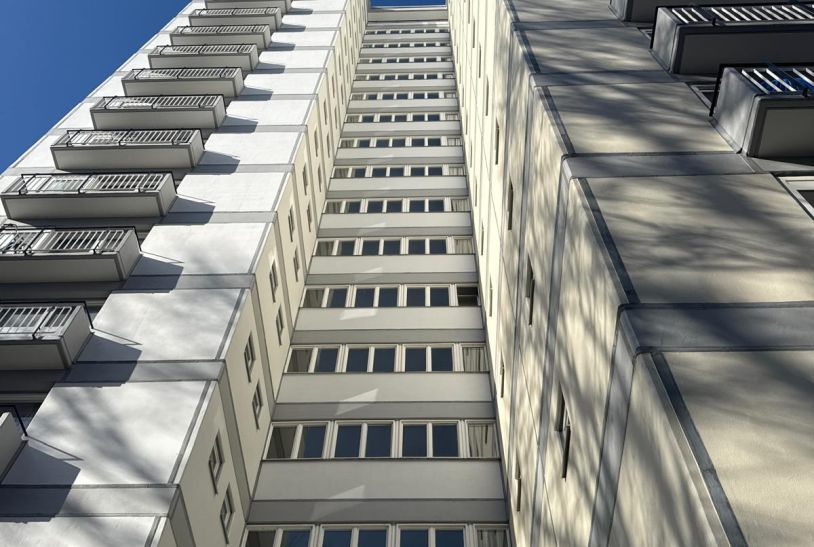 Durch die behutsame Instandsetzung wurde das ursprüngliche Erscheinungsbild des Hochhauses „Giraffe“ präzise wiederhergestellt und architektonisch geschaerft. Klare Farbkompositionen, ruhige Fassadenflächen und die betonte Plastizität der Balkonstrukturen verleihen dem Gebäude eine neue zeitlose Präsenz im Stadtraum Berlin Hansaviertel.